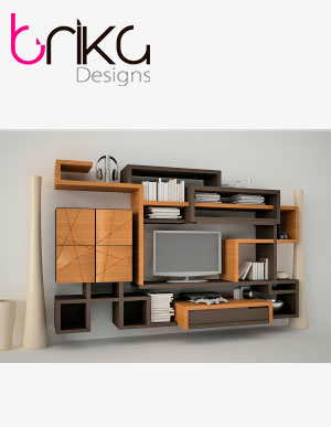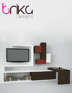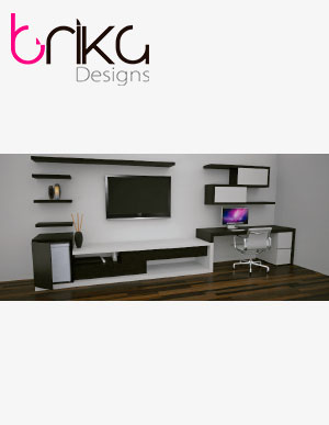 Centro De Entretenimiento, integrado con espacios de almacenamiento tipo repisas gavetas puertas de push; haladores de uñero. Fabricado con mdf y formica. Escritorio integrado, refrigeradora oculta. Todo en dos colores.