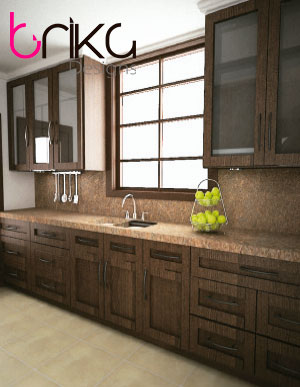 Con top de madera de 5cm forrado con formica, aéreos de 0.75 X 0.40m y área de microondas integrada.