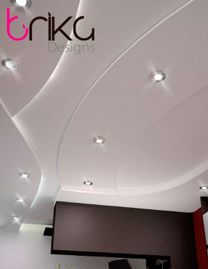 Techo fabricado con tabla yeso, iluminación indirecta y ojos de buey según diseño.